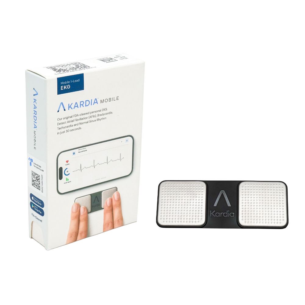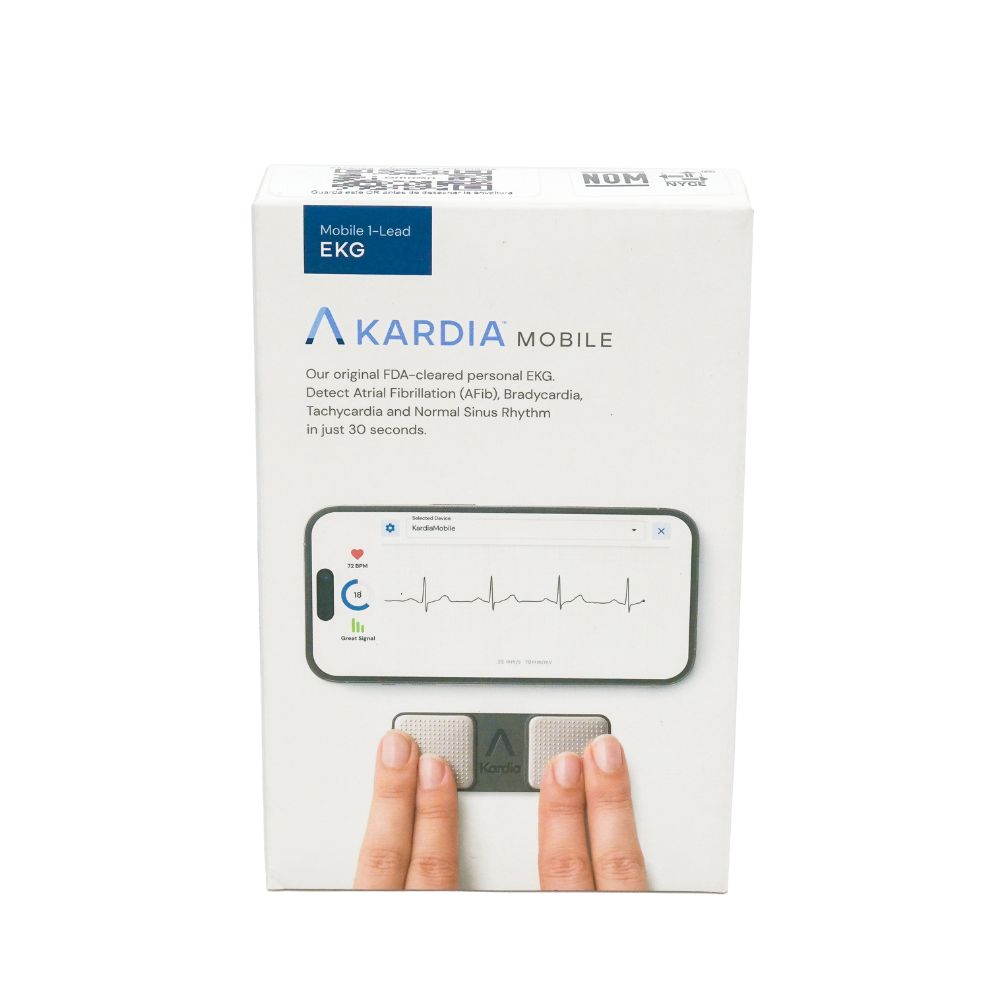 KardiaMobile es un ECG portátil de 1 derivación que puede registrar electrocardiogramas de grado médico en su celular. En tan sólo 30 segundos detecta fibrilación auricular, bradicardia sinusal, taquicardia sinusal y ritmo cardíaco normal desde la comodidad de su hogar o donde sea que esté, gracias a su formato pequeño y compacto.