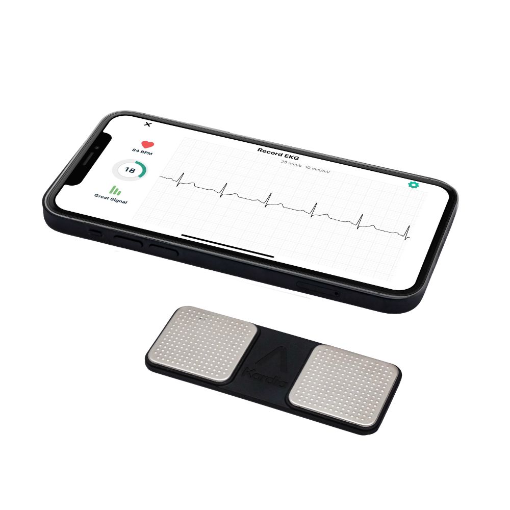 KardiaMobile es un ECG portátil de 1 derivación que puede registrar electrocardiogramas de grado médico en su celular.